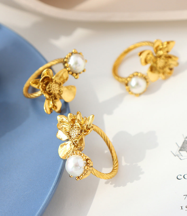 Adiffu Baroque Imitation Pearl Flower Shape Open Ring