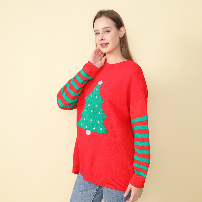 Adiffu Christmas Tree Crew Neck Pullover Knit Top