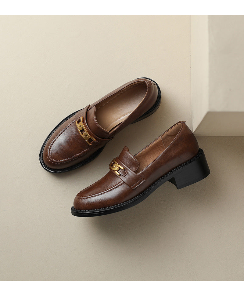 Inspired by timeless Parisian fashion, these loafers feature clean lines and a vintage brown finish that instantly elevates any outfit.