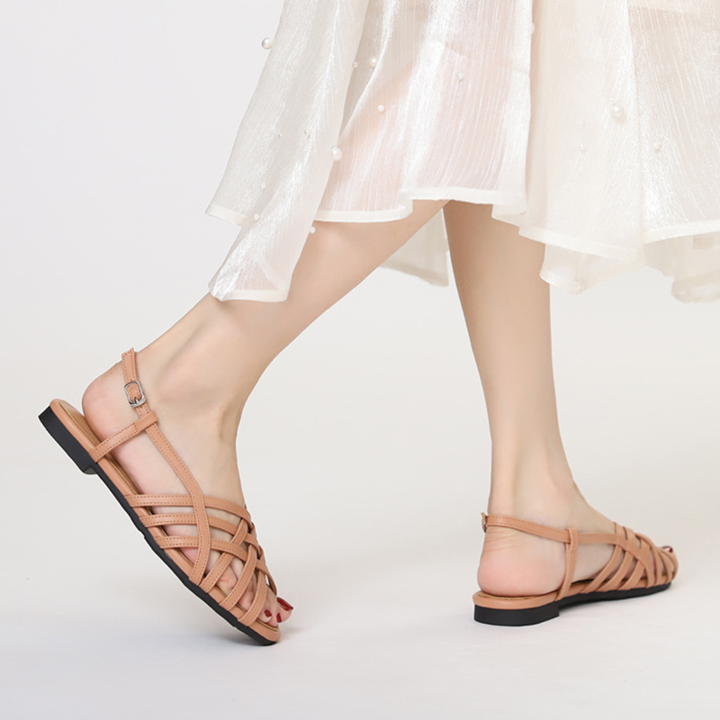 Inspired by classic Roman craftsmanship and modern French elegance, the Aurelia Roman Weave Flat Sandals feature a breathable woven upper with chic cut-out details and a subtle peep-toe design. The soft, flexible sole offers all-day comfort, while the adjustable ankle buckle ensures a secure and flattering fit. Finished with a low heel for effortless walking, these sandals are perfect for summer strolls, vacations, and everyday chic looks—where comfort meets timeless style.