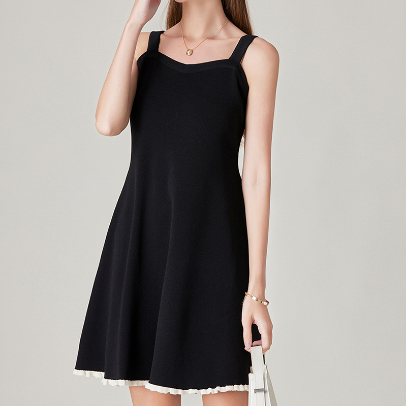 This elegant and sweet camisole knit dress combines sophistication and stylish design. Its exquisite knitted fabric and unique lacing design show the elegant curves and charming temperament of women. Whether for everyday wear or special occasions, this dress can bring you a comfortable feeling and excellent visual effect. Its simple yet sophisticated style makes it an indispensable piece in a fashionable woman's wardrobe, showing your elegance and personality.