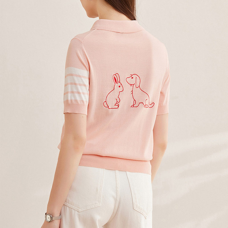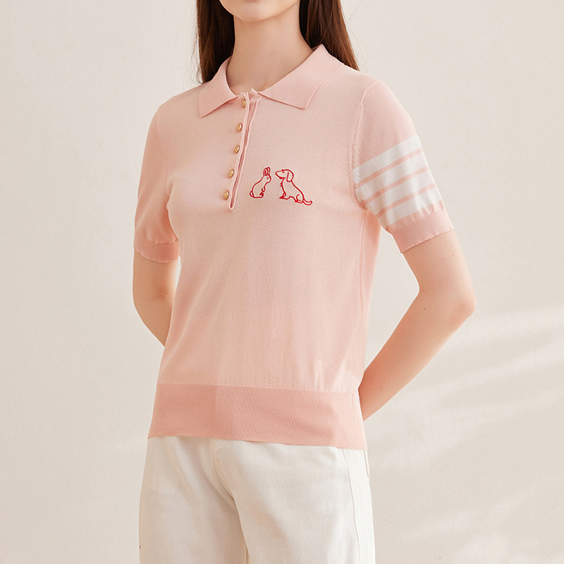 Preppy Style Lapel Short-sleeved T-shirt Knit